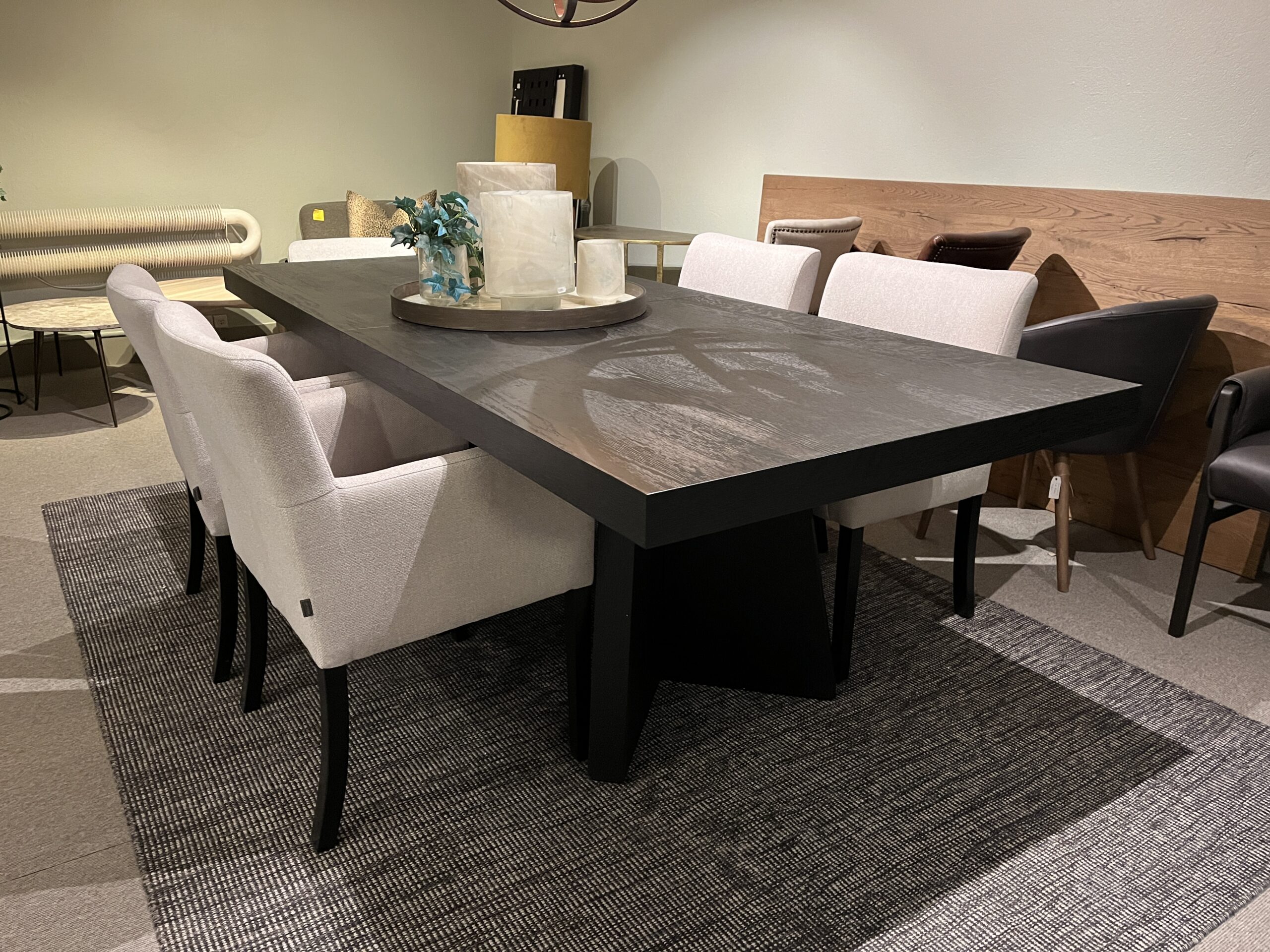Parker matbord i ekfanér är ett perfekt val för dig som söker både stil och funktionalitet i ditt hem. Med en tydlig och naturlig trästruktur får bordet en modern och robust känsla som passar utmärkt i minimalistiska inredningar. Det unika utdragbara systemet gör att bordet enkelt kan anpassas efter behov – från 235 cm upp till 335 cm i längd. Två iläggsskivor à 50 cm ingår, vilket ger flexibilitet för både små och stora sällskap. Parker matbord är idealiskt för dig som vill ha en mångsidig och elegant matplats för alla tillfällen.