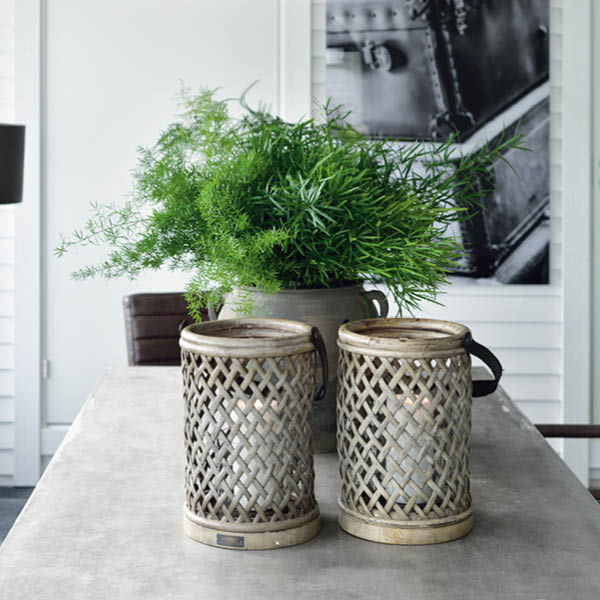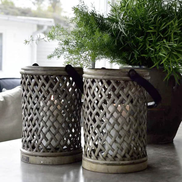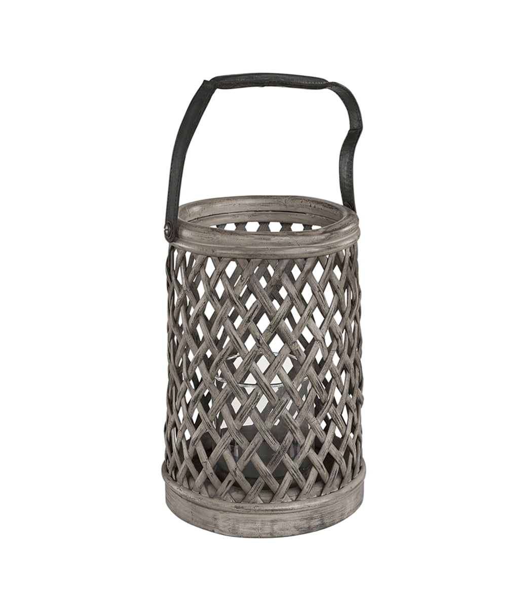 Lykta i flätad bambu med en glasinsats för ett ljus. Lyktan har en dekorativ, naturlig stil som sprider ett mjukt och mysigt ljus, och den har ett handtag för enkel förflyttning.
