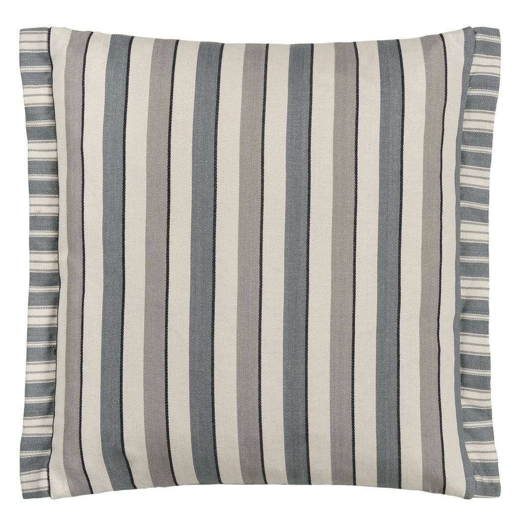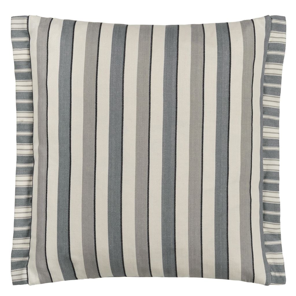 This contemporary woven cotton striped cushion in graphic charcoal greys with a contrasting stripe trim on two sides. The perfect striped cushion for your interior scheme.
