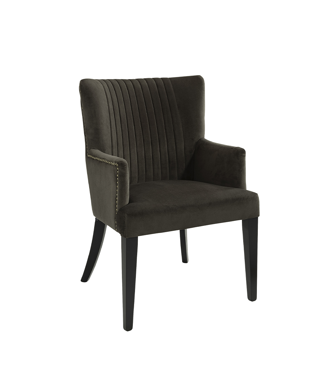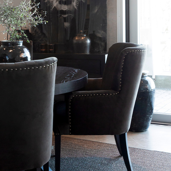 Dylan matstol i lyxigt sammetstyg kombinerar tidlös design med exceptionell sittkomfort. De dekorativa nitarna i antikfärgad metall och de dekorativa sömmarna på ryggstödet tillför sofistikerade detaljer som lyfter stolens elegans. Stolen står stadigt på ben i svart askträ, vilket ger en hållbar och stilren bas. Den mjukt stoppade sitsen och ryggen ger en bekväm sittupplevelse som gör Dylan perfekt för både vardagliga måltider och festliga tillfällen. Dess moderna och klassiska uttryck passar sömlöst in i olika typer av inredningar, från samtida matplatser till mer traditionella miljöer.