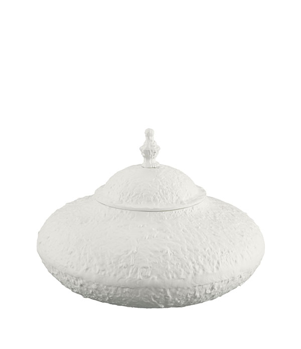Rund dekorationsask med lock i metall. Strukturerad yta.