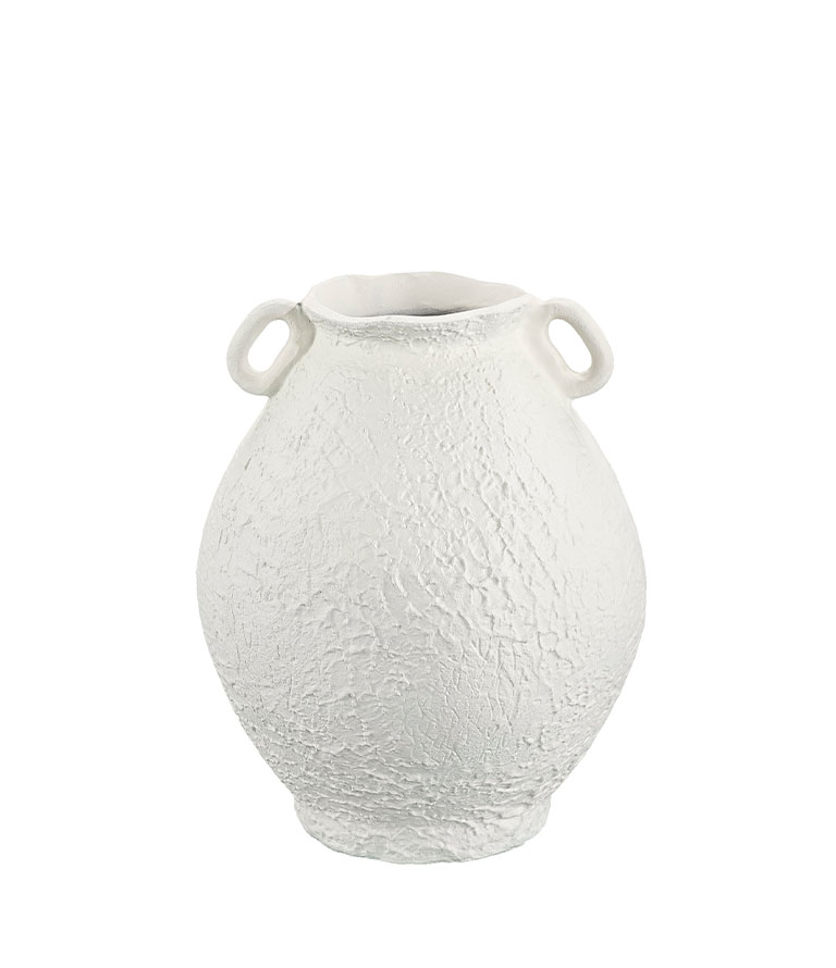 En urna av metall med yta i struktur. Urnan är vackert formad och har handtag. Denna urna/vas är inte vattentät och ska endast användas utan vatten.