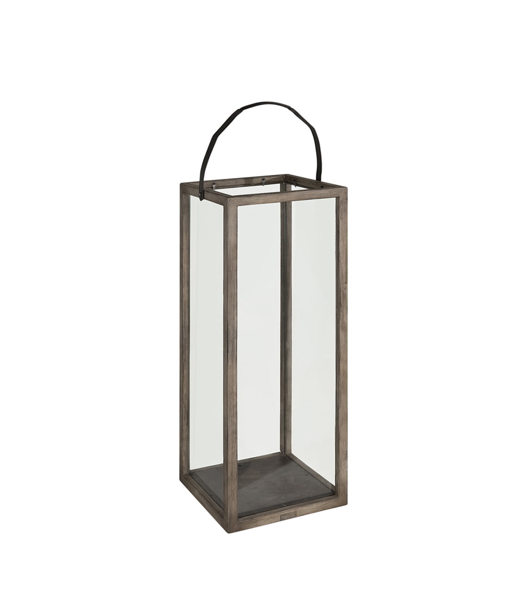 Stilren golvlykta tillverkad av Java oak och glas, utrustad med ett elegant läderhandtag för enkel förflyttning. Perfekt för att skapa en varm och inbjudande atmosfär i hemmet.