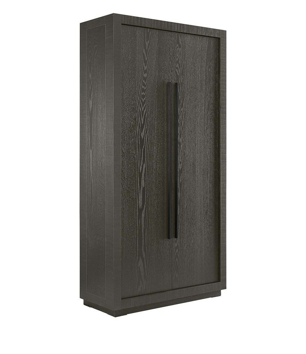 Hunter-garderoben i ekfanér kombinerar en minimalistisk design med en tydlig och vacker trästruktur. Skåpet är utrustat med ett fast hyllplan och två flyttbara hyllplan, samt en praktisk klädstång för flexibel förvaring. Hunter-kollektionen erbjuder även matchande möbler som matbord, sängbord och byråer, vilket gör det enkelt att skapa en enhetlig och stilren inredning. Den är perfekt för moderna hem där funktion och estetik möts.