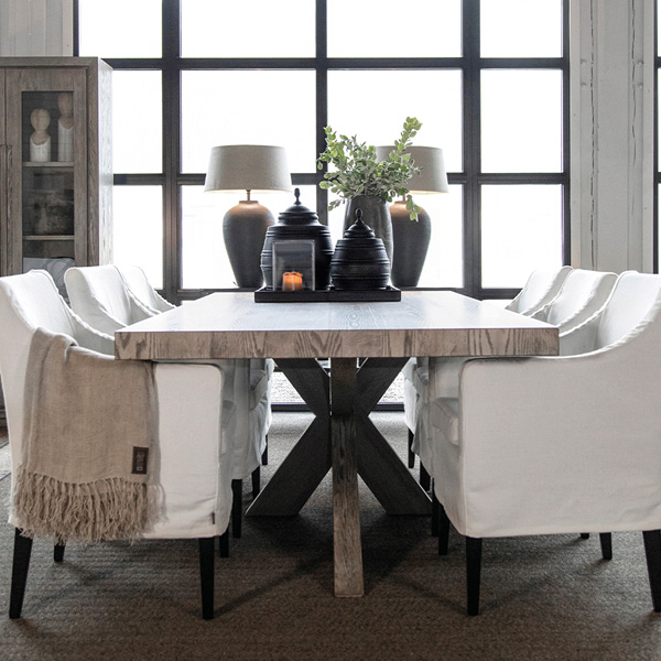 Matbordet Hunter är ett stort och rymligt matbord i ekfanér, perfekt för familjemåltider och större sällskap. De korsande benen skapar extra komfort med mer utrymme under bordet, vilket ger en luftig och modern känsla. Bordet finns i flera färgval, vilket gör det enkelt att matcha med din övriga inredning. Hunter matbord är ett hållbart val för dig som söker ett stilrent och bekvämt matbord.