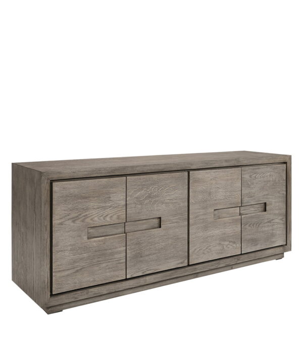 Hunter bufféskåp är en stilren och funktionell förvaringsmöbel med tidlös design. Tillverkat av ekfanér med en tydlig och naturlig trästruktur, ger skåpet en varm och exklusiv känsla som passar både moderna och klassiska hem. Integrerade handtag förstärker den stilrena, moderna looken och gör skåpet enkelt att öppna. Invändigt finns två fasta hyllplan som erbjuder praktisk förvaring för porslin, glas och andra vardagsföremål. Med sin genomtänkta design och högkvalitativa material blir Hunter bufféskåp en elegant och funktionell detalj i matsalen, vardagsrummet eller hallen. Hunter kombinerar estetik och funktionalitet i en stilren design – perfekt för dig som söker en möbel med hög kvalitet och tidlös elegans.