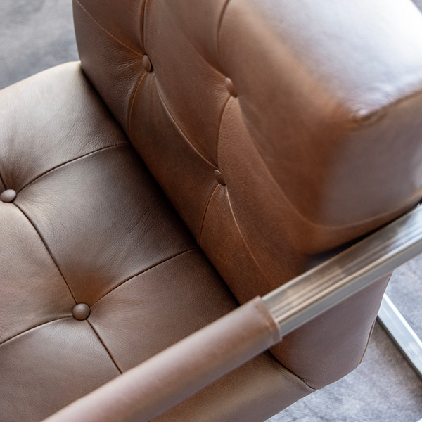 Skötselråd: För att lädret ska behålla färg och funktion är det viktigt att man vårdar det. Dammsug möbeln med mjuk borste. Fläckar skall torkas bort omedelbart innan de dras in i lädret. Använd aldrig starka rengöringsmedel utan använd en mjuk trasa med ljummet vatten eller ett rengöringsmedel avsett för läder. På små repor och skav kan man försöka gnugga med ett rent finger. Utsätt aldrig lädret för starkt solljus och placera inte möbeln nära en värmekälla. Nubuck är ett slipat och matt läder, som har en mycket mjuk och len yta. Eftersom den blanka, skyddande ytan på lädret slipats bort, är lädret väldigt känsligt för smuts och fläckar och därför är det viktigt att möbeln behandlas med Leather Masters ”Natural Protection” innan den tas i bruk och regelbundet därefter. Till skillnad mot andra läder ska man inte smörja in denna typ av läder. Gör man det tappar det sin typiska karaktär. Därför ska man istället impregnera nubuck med Leathermasters ”Natural Protection”. Vid rengöring använd ”Nubuck cleaner”.