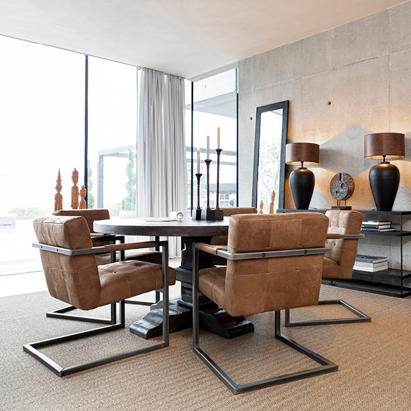 Jed matstol i högkvalitativt skinn är en elegant stol med raka linjer och en robust metallstomme som kombinerar stil och hållbarhet. De integrerade armstöden ger extra komfort och stöd, vilket gör stolen perfekt för långa middagar och avkopplade stunder runt matbordet. Den pikerade ryggen, tillsammans med de dekorativa sömmarna, tillför en sofistikerad detalj som lyfter stolens design och ger den ett exklusivt uttryck. Jed är både stilren och slitstark, vilket gör den till ett utmärkt val för såväl vardag som fest. Dess moderna utseende och noggrant utformade detaljer smälter enkelt in i allt från samtida matplatser till industriella och klassiska miljöer. En matstol med armstöd som förenar estetik och funktion, skapad för att erbjuda en inbjudande och bekväm matplats i ditt hem.