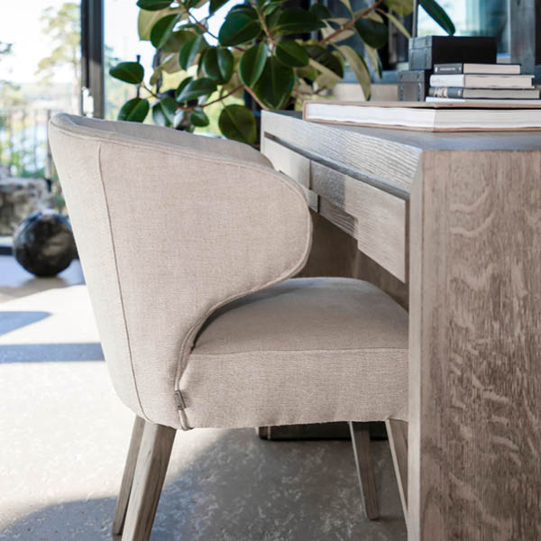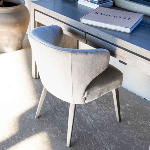 La Vella matstol är en stilren och sofistikerad stol som kombinerar mjuka former med noggrant utvalda material. Klädd i högkvalitativt vävt tyg erbjuder den en behaglig sittupplevelse med både komfort och hållbarhet, vilket gör den perfekt för långa middagar och trevliga stunder runt matbordet. De robusta benen i askträ ger en stabil konstruktion och tillför en naturlig, tidlös känsla som smälter in i både moderna och klassiska inredningar. Den mjuka, ergonomiska formen gör La Vella till en bekväm stol, medan dess minimalistiska design och texturerade tyg tillför både elegans och karaktär till ditt hem.