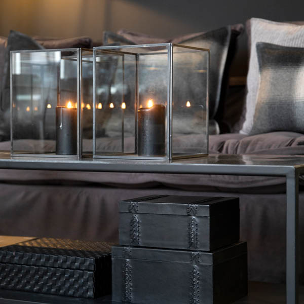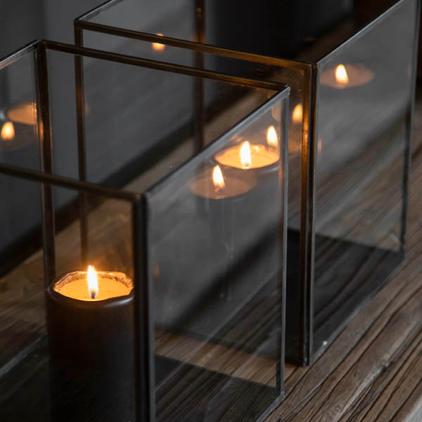 3-pack fyrkantiga lyktor i olika storlekar. Tillverkade i hållbar metall och glas, är dessa lyktor perfekta för att skapa en varm och inbjudande atmosfär i alla miljöer.