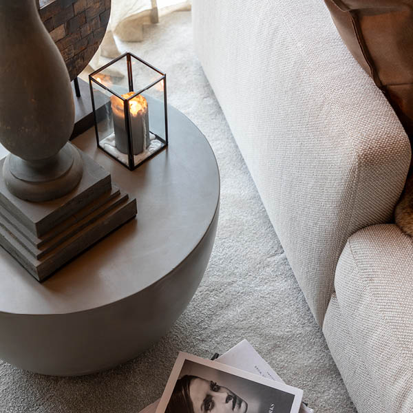 Luna är ett robust och stilrent sidobord i betong med en mjukt rundad form som passar perfekt både inomhus och utomhus under sommartid. Tillverkat av naturliga material såsom granitstenmjöl, cement, naturliga jutefibrer och vatten, erbjuder Luna en hållbar och tidlös design. Eftersom betong är ett poröst material behandlas bordet med ett skyddande vax för att minimera risken för fläckar och öka hållbarheten. Varje bord är handgjutet, vilket gör varje exemplar unikt med naturliga variationer i färg och tjocklek. Detta innebär att höjden kan skilja sig något mellan olika möbler. Luna sidobordet är anpassat för utomhusbruk under sommartid, men bör förvaras under tak och skyddas från vattenansamlingar, särskilt på bord med skålformad yta. För att förlänga livslängden rekommenderas att bordet inte förvaras utomhus under vintern. Luna finns som både sidobord och soffbord, vilket gör det enkelt att skapa en enhetlig och stilfull inredning. Med sin rustika och industriella karaktär blir det en snygg och funktionell inredningsdetalj som kompletterar såväl moderna som klassiska miljöer.