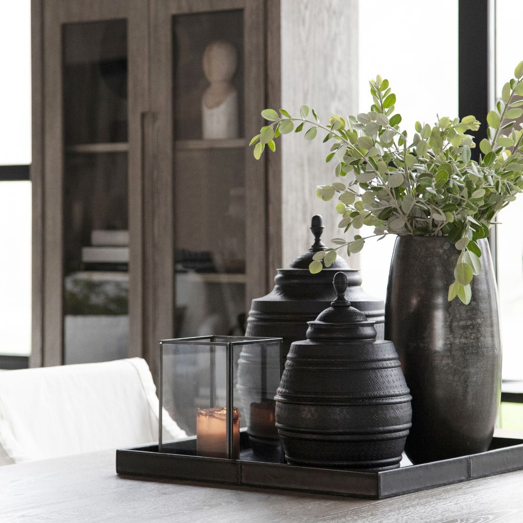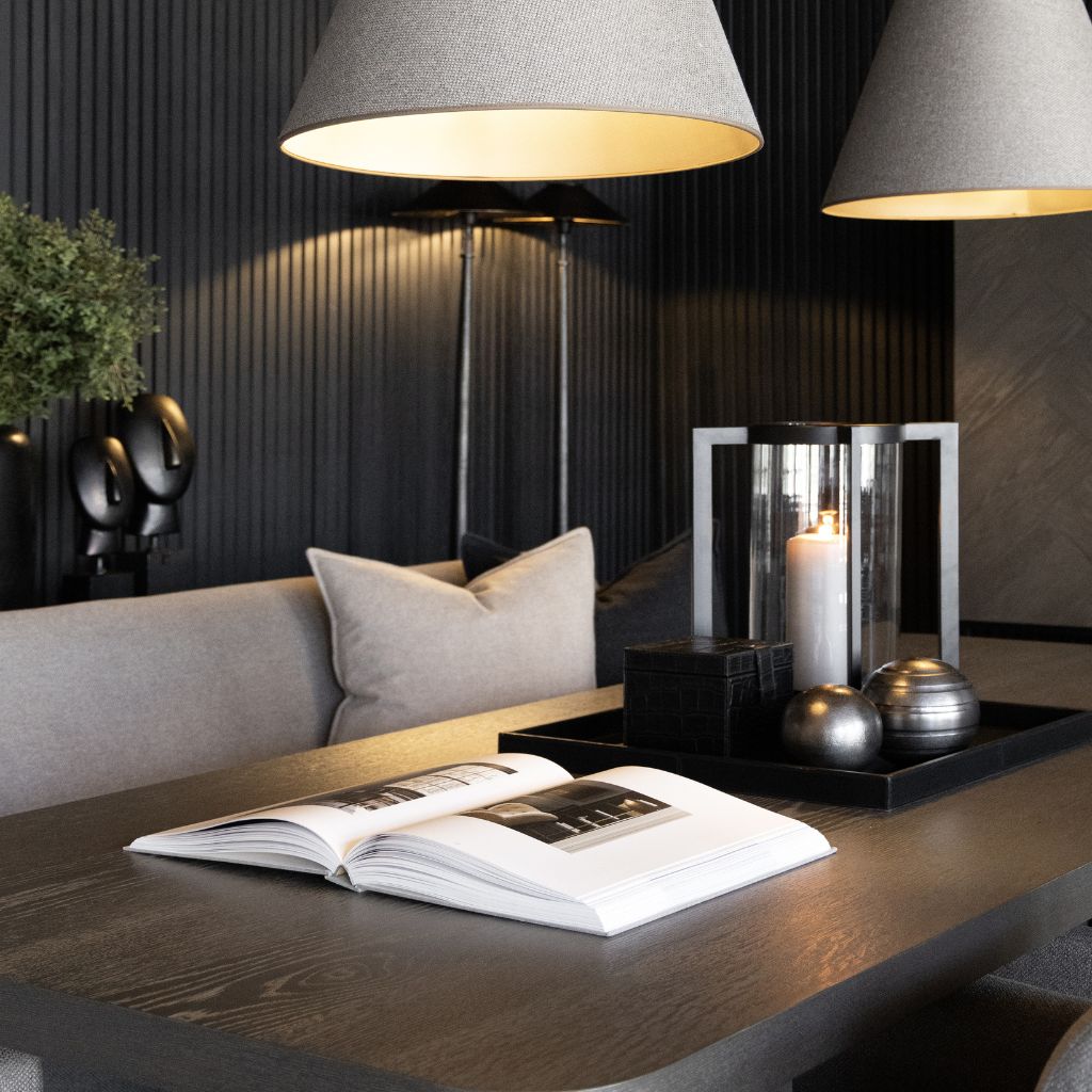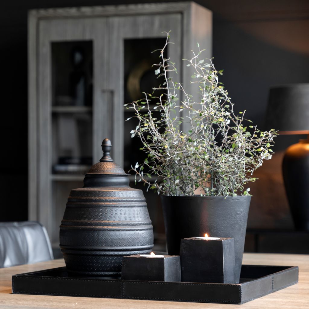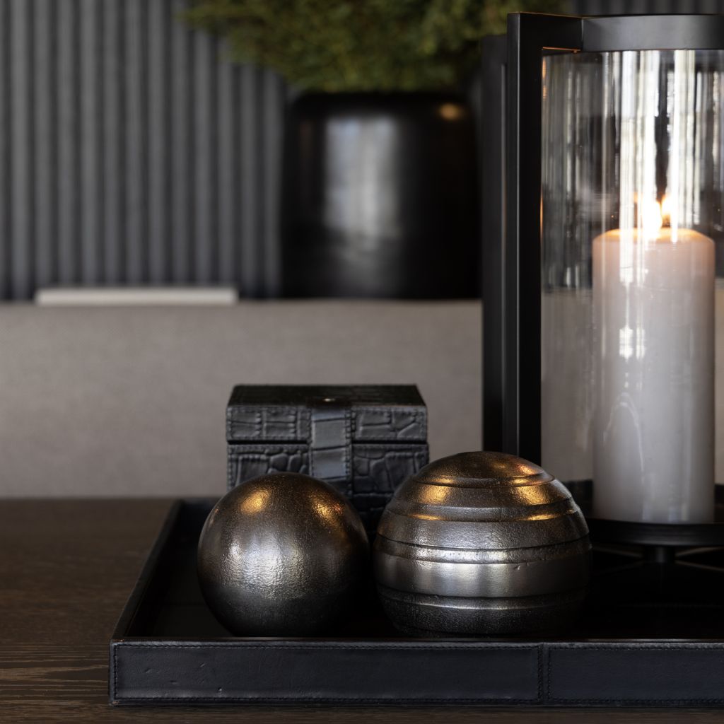 En fyrkantig bricka klädd i läder med dekorativa sömmar. Perfekt för servering eller som ett dekorativt inslag. Brickans robusta konstruktion och tidlösa design gör den till ett idealiskt val för både moderna och klassiska hem.