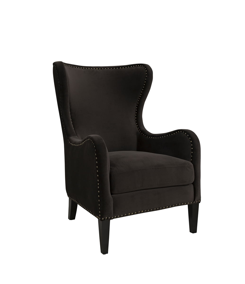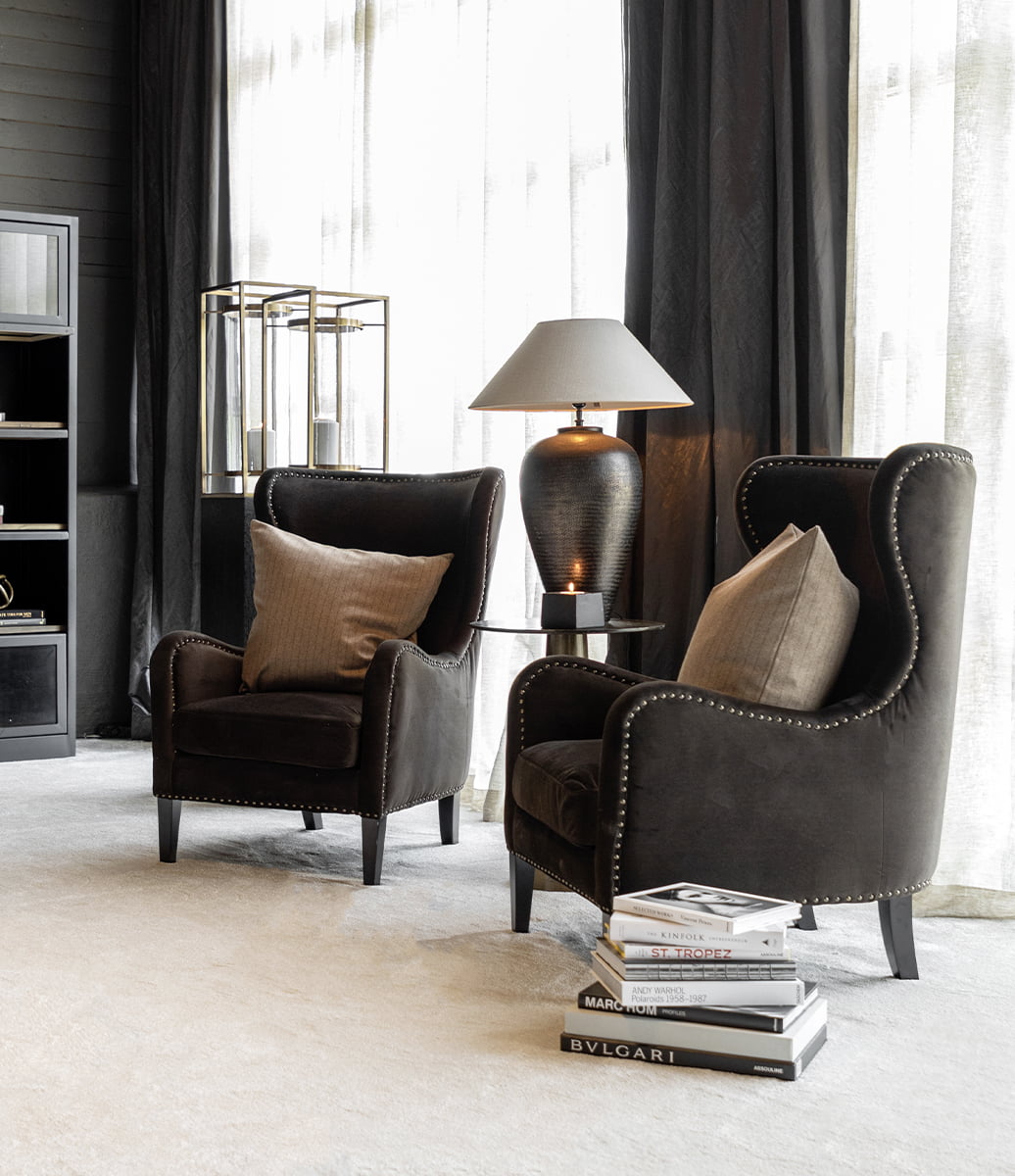 Mischa sammetsfåtölj kombinerar tidlös design med moderna detaljer. Med sin formade, höga rygg och dekorativa metallnitar i antik finish blir denna fåtölj en stilfull mittpunkt i ditt hem. De robusta träbenen ger en gedigen känsla och kompletterar både moderna och klassiska inredningar. Mischa fåtölj finns i både tyg och skinn, vilket gör det enkelt att anpassa den efter din personliga stil och inredning. Oavsett materialval erbjuder fåtöljen hög komfort och enastående hållbarhet, vilket gör den idealisk för såväl vardagsrum som läshörnor.