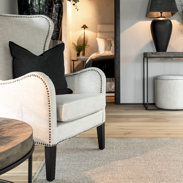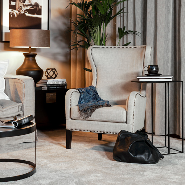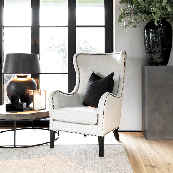 Mischa tygfåtölj kombinerar tidlös design med moderna detaljer. Med sin formade, höga rygg och dekorativa metallnitar i antik finish blir denna fåtölj en stilfull mittpunkt i ditt hem. De robusta träbenen ger en gedigen känsla och passar perfekt i både moderna och klassiska inredningar. Mischa fåtölj finns i både tyg och skinn, vilket gör det enkelt att anpassa den efter din personliga stil och inredning. Oavsett materialval erbjuder fåtöljen hög komfort och hållbarhet, vilket gör den idealisk för såväl vardagsrum som läshörnor.