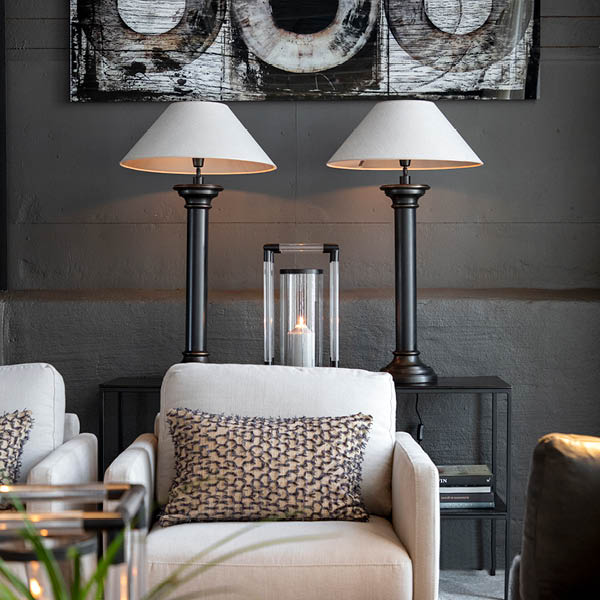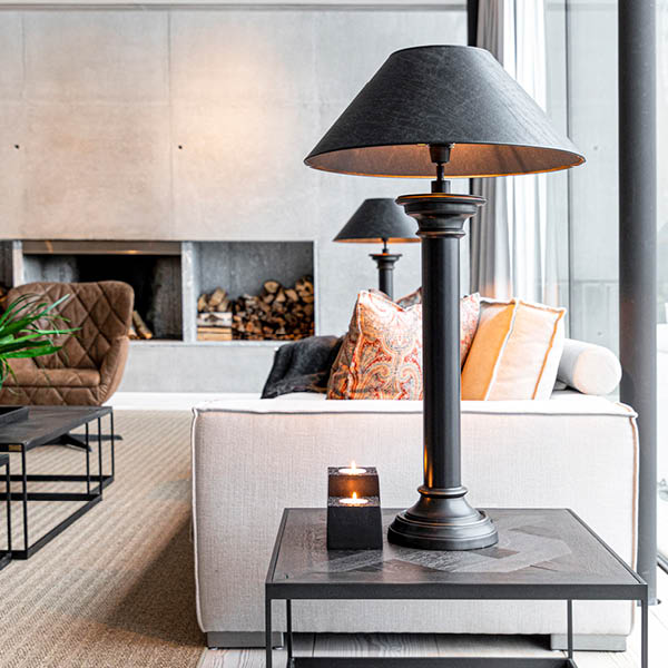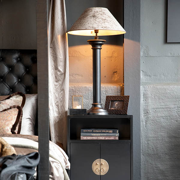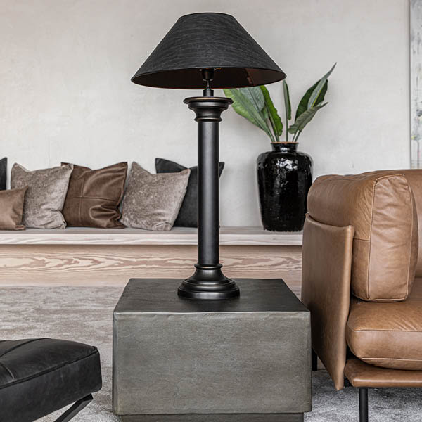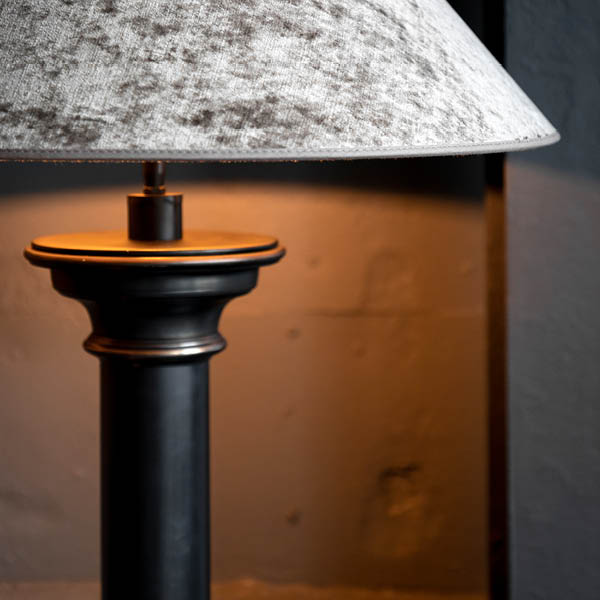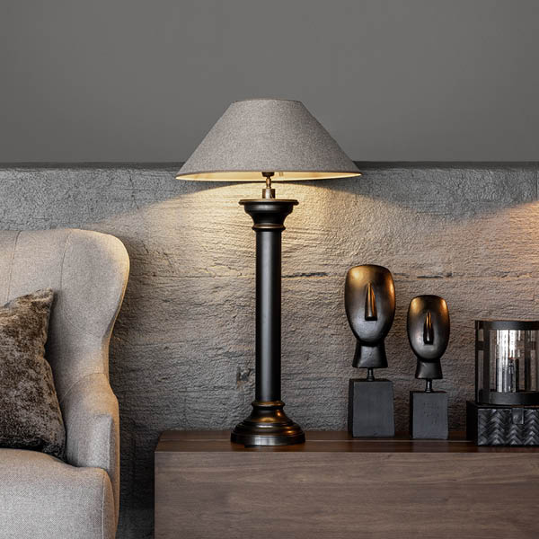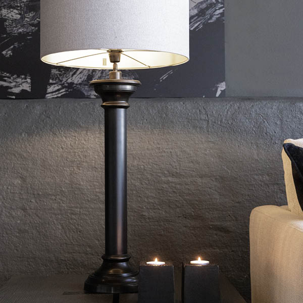 Bordslampa i metall har en klassisk design och kommer i färgen antikbrons, vilket ger en sofistikerad och tidlös känsla till ditt hem. Observera att lampskärmen inte ingår. På produktbilden visas lampskärmen med artikelnummer 82-60008-29, som kan köpas separat.