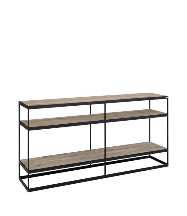 Shakira konsolbord kombinerar naturliga material med modern design, vilket gör det till ett stilrent och funktionellt tillskott i hemmet. Hyllorna i ek och det robusta metallunderredet skapar en vacker kontrast som passar perfekt i både moderna och industriella inredningsstilar. Med en höjd på 80 cm erbjuder Shakira praktisk förvaring och avlastningsyta för dekorationer, böcker eller vardagsföremål. Dess stilrena uttryck gör att konsolbordet smälter in lika bra i hallen som i vardagsrummet eller på kontoret.