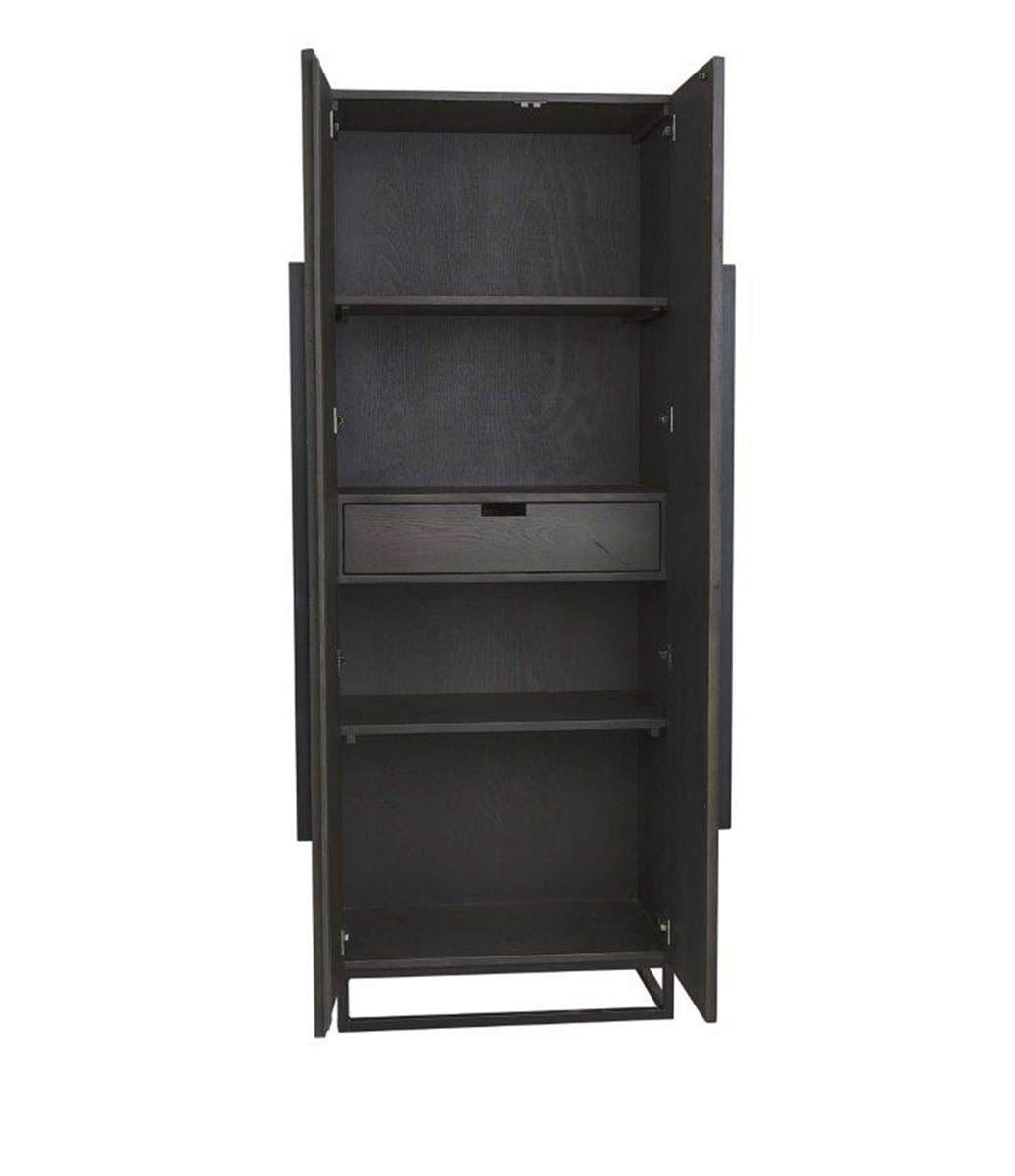 Vancouver-skåpet är en perfekt kombination av elegans och funktion, designat för att ge ditt hem ett stilfullt intryck. Tillverkat i ekfanér med ett unikt fiskbensmönster blir detta skåp en elegant fokuspunkt i varje rum. Skåpets ben och handtag i mattsvart stål skapar en modern kontrast som förstärker den stilrena designen. Skåpet har två flyttbara hyllplan och en fast låda, vilket gör det enkelt att anpassa förvaringen efter dina behov. Detta gör skåpet både praktiskt och estetiskt, perfekt för vardagsrummet, sovrummet eller hallen.