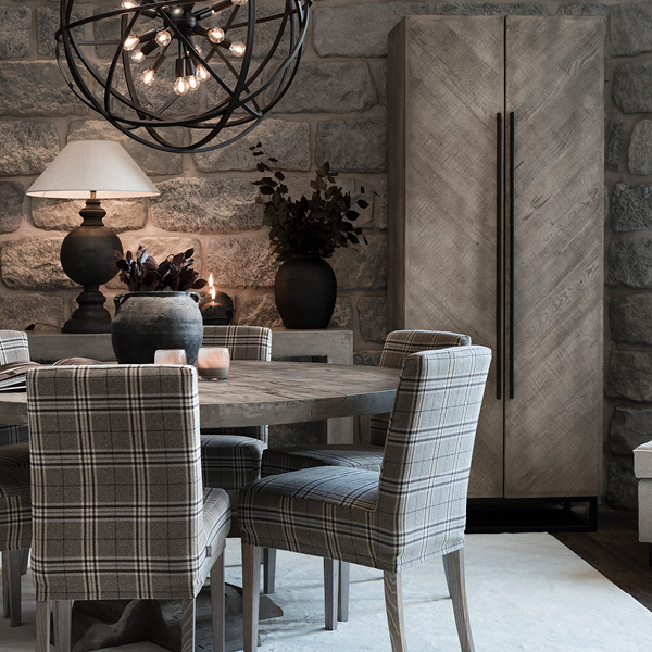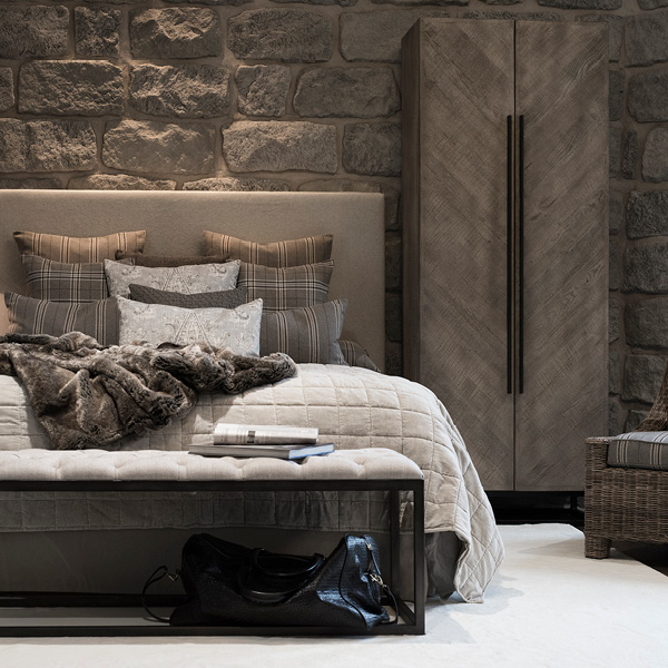 Skötselråd: Tänk på att ytorna är känsliga mot starka rengöringsmedel. Använd därför alltid underlägg under glas, koppar, vaser mm. Torka försiktigt med lätt fuktad trasa. Dammsug med mjukt möbelmunstycke i de naturliga sprickorna. Möblerna skall behandlas med ofärgat möbelvax, som skyddar mot fläckar. Vi rekommenderar ”Protect Spraywax”.
